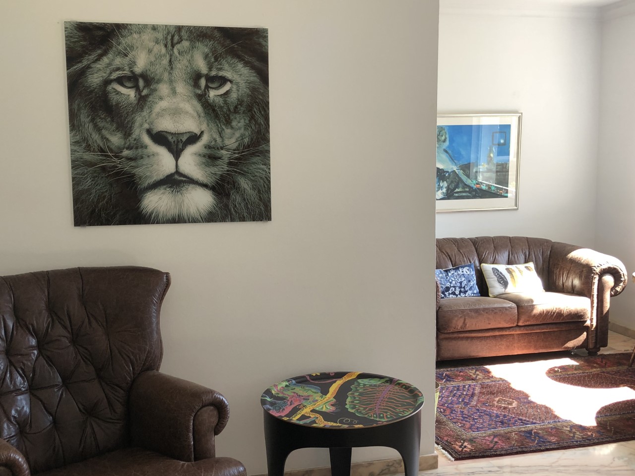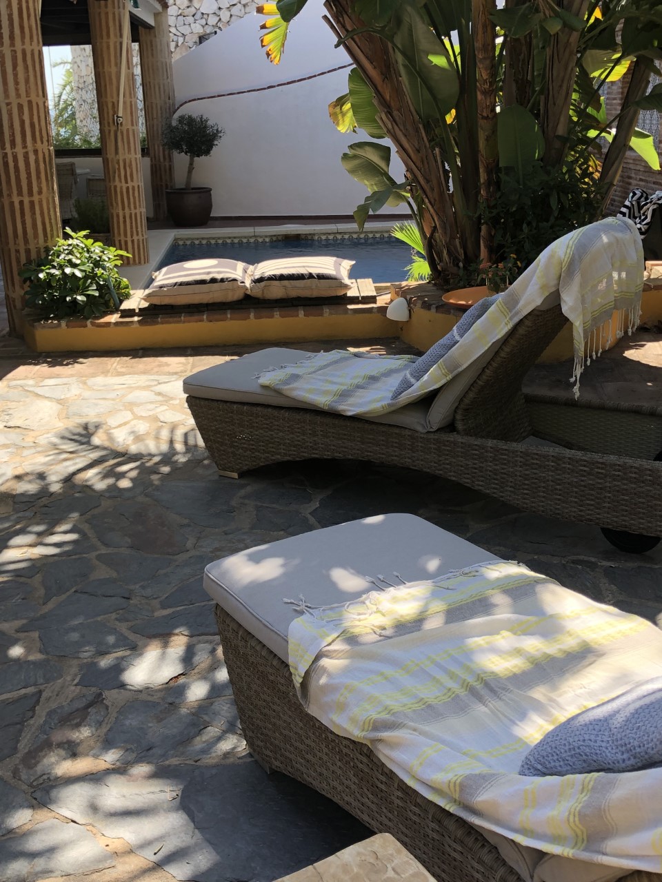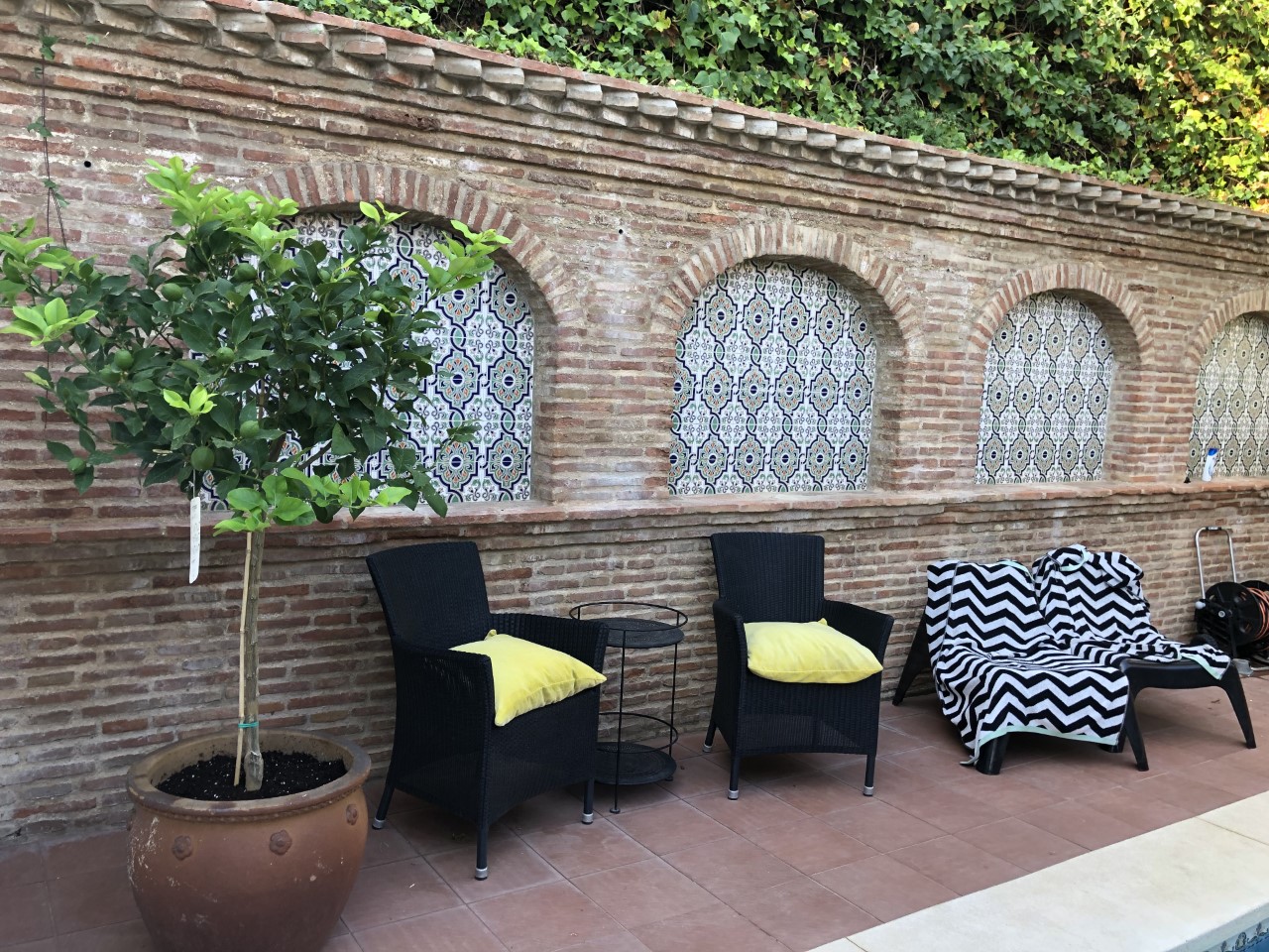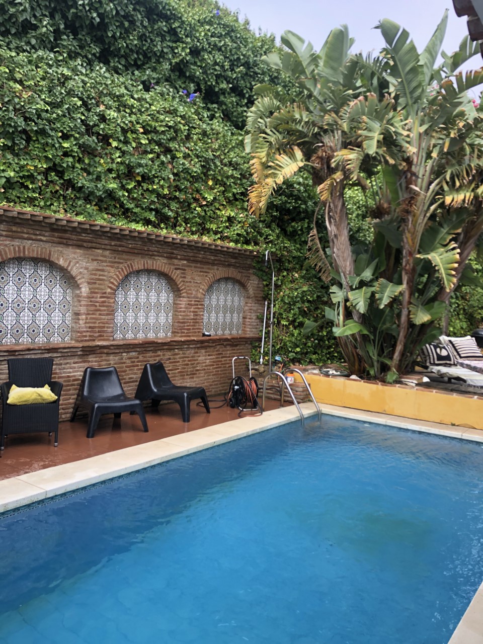 Till huset hör en exotisk trädgård och pool mot berget. Murgröna, avokadoträd och olika växter skapar en djungelkänsla. Det är mycket lugnt och tyst.